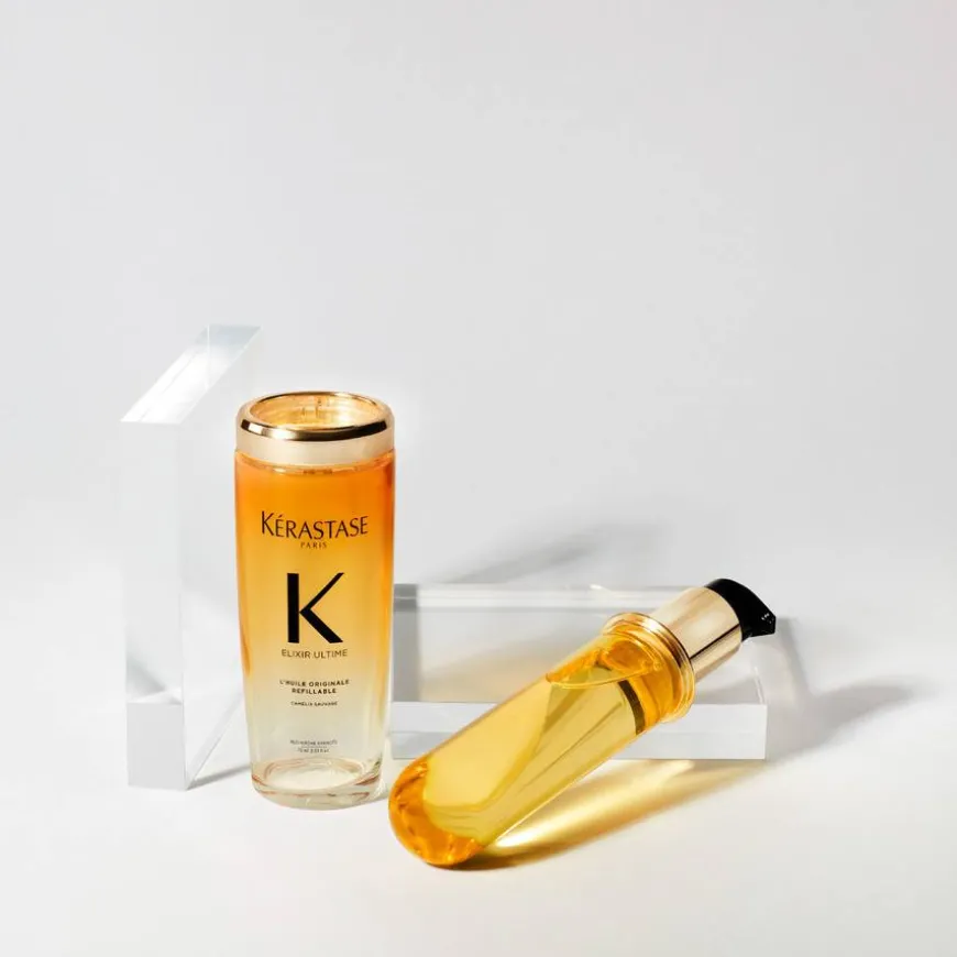 Kérastase Elixir Ultime L’Huile Originale Hair Oil Refill gir glans, mykhet og beskyttelse mot frizz i en bærekraftig refill, og er: