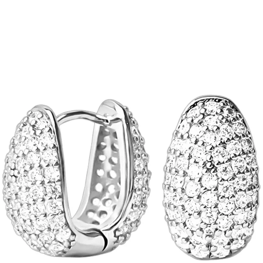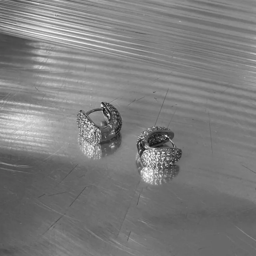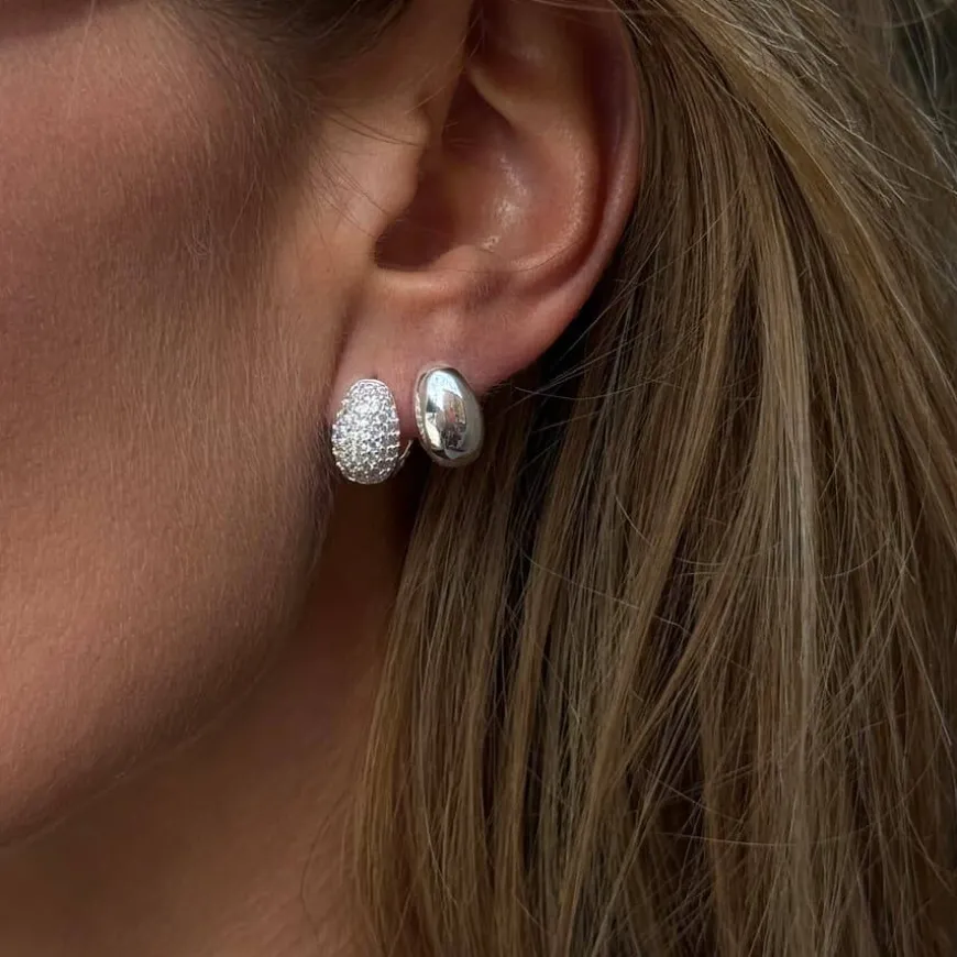 Elysian Pave Huggies Silver er elegante små hoop-øredobber som sitter tett rundt øreflippen og er dekket med glitrende hvite zirkonia, noe som gir et sofistikert og tidløst uttrykk. Med sin glatte, avrundede form og klassiske design passer disse 925 sølvbelagte øredobbene perfekt både alene og sammen med andre smykker. Et allsidig tillegg til enhver smykkesamling. Leveres i en Muli Collection-merket oppbevaringspose.