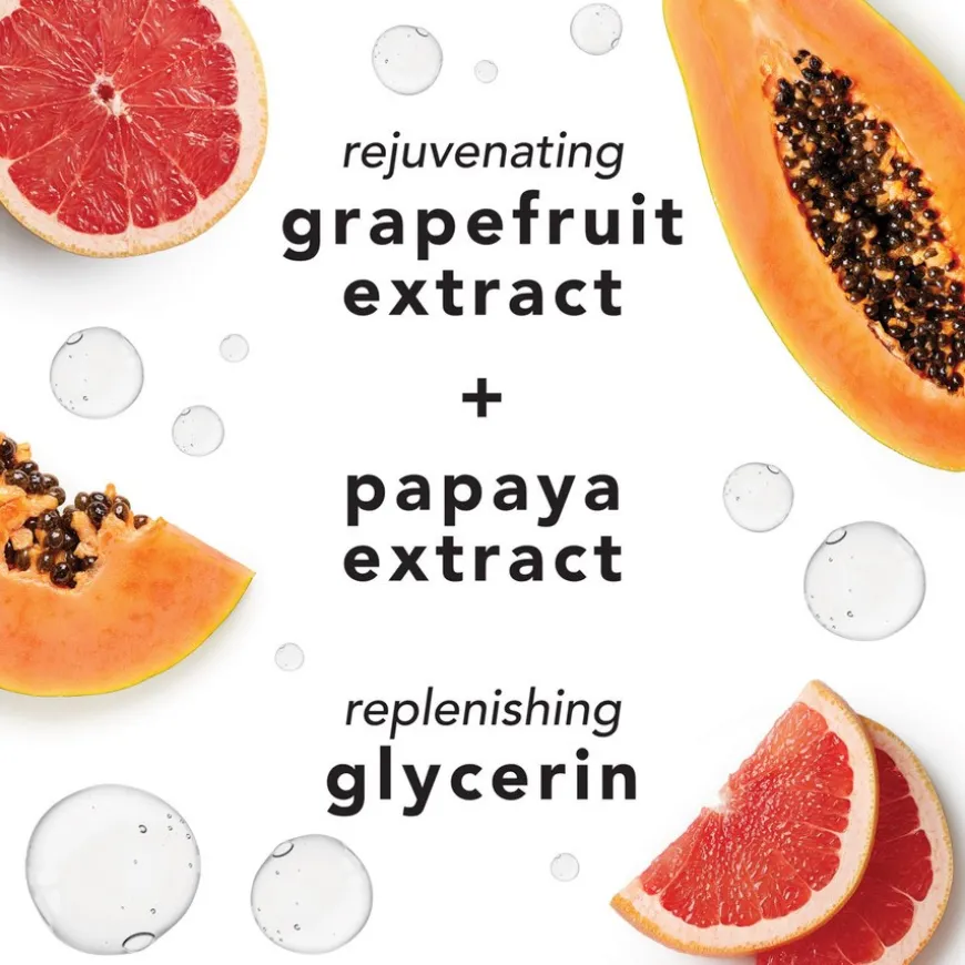Aqua (Water, Eau), Glycerin, Propylene Glycol, PEG-8 Stearate, PPG-2 Hydroxyethyl Cocamide, Carica Papaya (Papaya) Fruit Extract, Carbomer, Parfum (Fragrance), Triethanolamine, Citrus Grandis (Grapefruit) Fruit Extract, CI 77891 (Titanium Dioxide), Methylparaben, Mica, Diazolidinyl Urea, Linalool, Hexyl Cinnamal, Limonene, Benzyl Alcohol, Citronellol, Geraniol, Propylparaben, CI 19140 (Yellow 5), Sodium Chloride, CI 42090 (Blue 1), CI 15985 (Yellow 6)