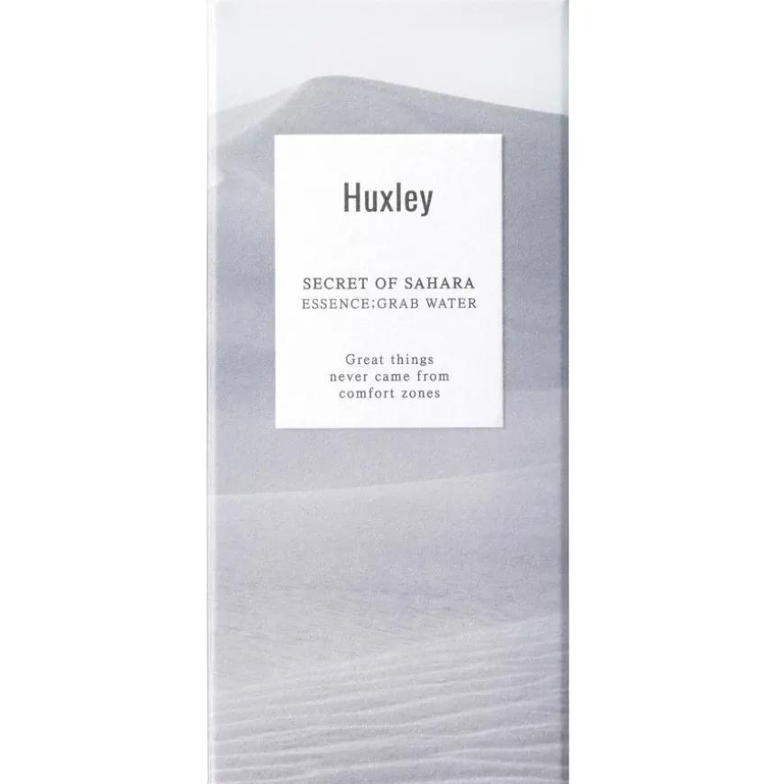 Huxley Essence; Grab Water serum hydrerer huden effektivt med sin raskt absorberende og ikke-klebrige konsistens. Inneholder kaktusfikenolje og hyaluronsyre som er kjent for sine fuktgivende egenskaper. En blanding, rik på antioksidanter, av camu camu, acaibær-ekstrakt, japansk aprikosekstrakt og peppermynte beroliger og frisker opp huden.