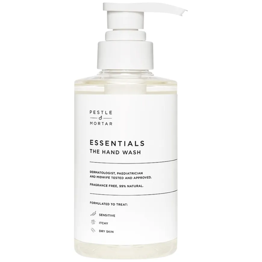 Essentials Hand Wash er en ren og klinisk formulert daglig håndsåpe utviklet med omtanke for hele familien, også for sensitiv hud. Den inneholder beroligende og pleiende ingredienser som havrekjerneekstrakt, panthenol, vitamin E og Gotu Kola-bladekstrakt. Håndvasken rengjør grundig uten å tørke ut huden, og lindrer effektivt kløe, tørrhet og irritasjon. Den milde formelen etterlater hendene rene, myke og beskyttet – perfekt for hyppig bruk.