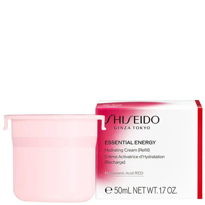 Essentiel Energy Hydrating Cream (Refill)er en lett og fuktgivende krem som tekker raskt og dypt ned i huden for en gjennomfuktet og glødende hud. Kremen aktiverer hudens evne til å produsere fukt, og forebygge fine linjer ved hjelp av Shiseido’s røde hyaluronsyre, som trekker enda dypere ned i huden for 3x mer langvarig fukt. Ved hjelp av ingrediensen rød ingefær blir fine linjer mindre synlige etter 2 uker. Huden etterlates fuktig, livlig og glødende.