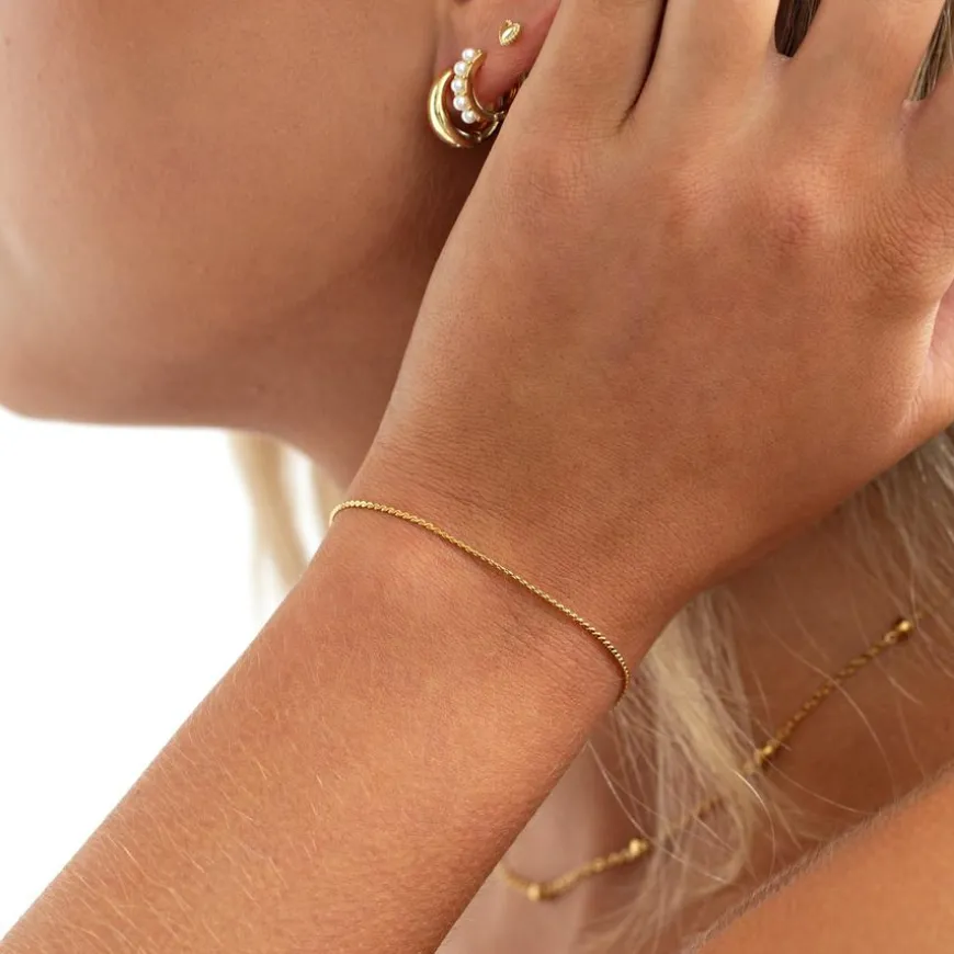 Essie Pearl Hoop Earrings er designet for å kombinere klassisk eleganse med moderne stil. Disse bøyleøreringene, laget av messing med 18k gullbelegg, er prydet med vakre 9 mm perler som gir et sofistikert og tidløst preg. De er perfekte for å fremheve både hverdagslige antrekk og spesielle anledninger, med sitt subtile, men iøynefallende utseende. Takket være det nikkelfrie materialet og den lette designen, er disse øreringene både komfortable og enkle å bruke.