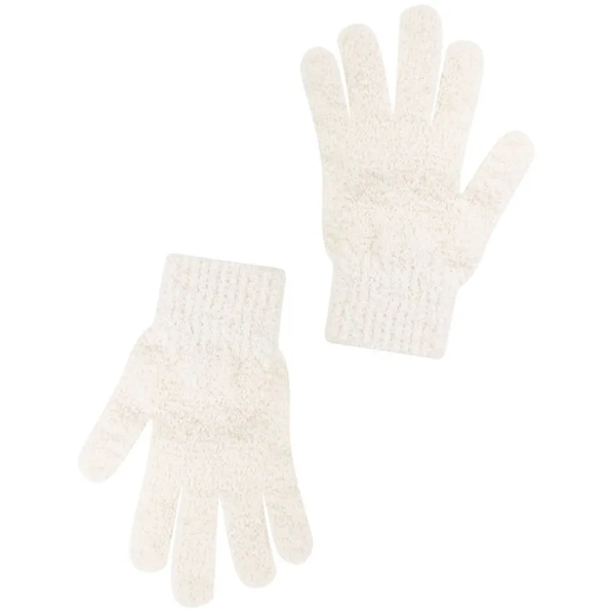 Exfoliating Body Gloves er et par teksturerte eksfolieringshansker som forynger og friske opp huden. Disse hanskene polerer forsiktig bort tørr hud og tetter porene, renser bort giftstoffer og urenheter for å avsløre hudens naturlige glød. Perfekt for kroppsskrubbing, eksfoliering og rensing.