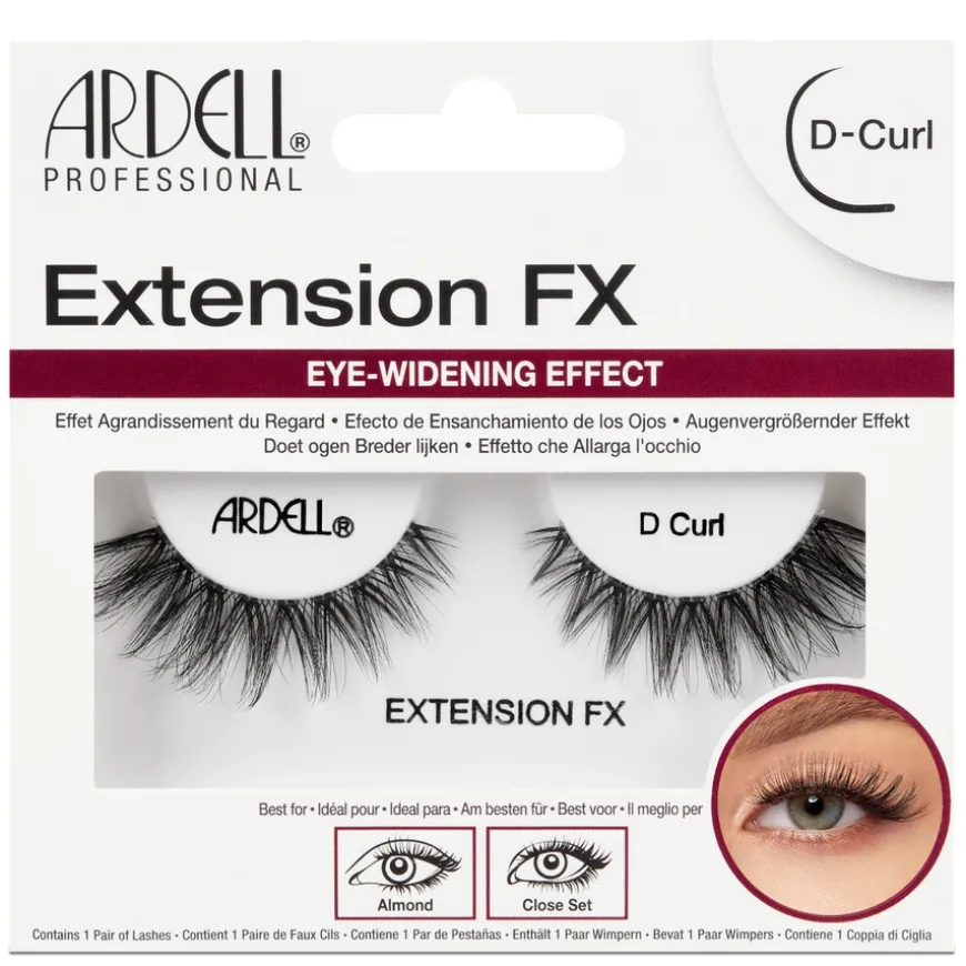 Ardells Extension FX-serie er en skreddersydd serie som tilpasser seg akkurat din øyefasong. Hver type vil gi den beste effekten av volum, bøy og lengde i forhold til dine øyene.D-curl vil gi en bredere effekt. Er perfekt for mandelformede øyene eller øyne som sitter tettere.