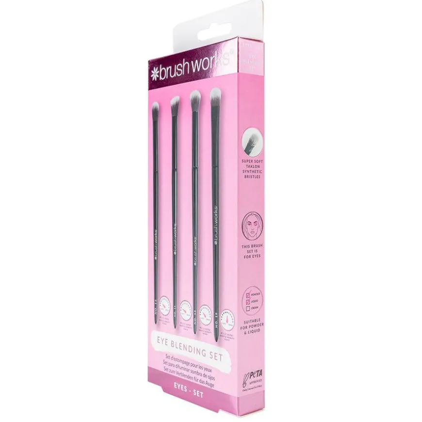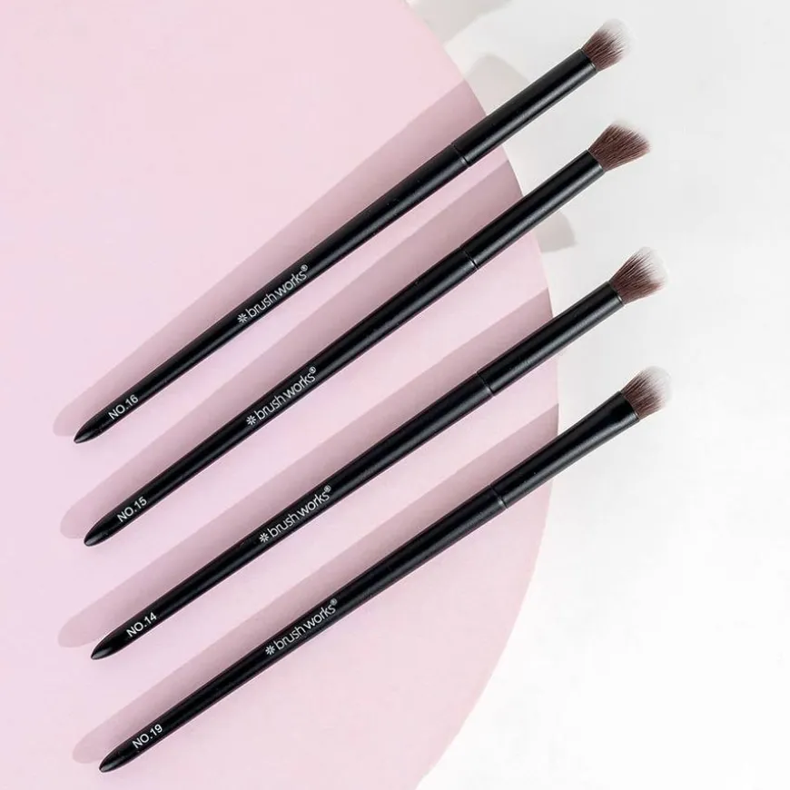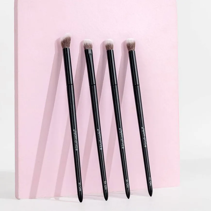Forvandle din øyesminke med Brushworks Eye Blending Set, en samling designet for å fremheve kunstneren i deg. Dette settet inneholder No. 16 Tapered Blending Brush, No. 15 Angled Blending Brush, No. 14 Fluffy Blending Brush og No. 19 Crease Brush, hver valgt ut for å dekke hvert trinn i din øyenskyggerutine. Med sine supermyke taklon-syntetiske børster sikrer de at øyenskyggene dine glir på jevnt, samtidig som de er ekstremt skånsomme mot det delikate øyeområdet. No. 16 Tapered Blending Brush har en tetthetsskala på 2, som lar deg sømløst blande skyggene. No. 15 Angled Blending Brush tar dine blandingsevner til et nytt nivå med en tetthetsskala på 1, noe som sikrer en fløyelsmyk blanding hver gang. No. 14 Fluffy Blending Brush med en tetthetsskala på 3, lar deg enkelt overgå mellom nyanser og skape et sømløst utseende. Den siste børsten er No. 19 Crease Brush, en ekte perle med en tetthetsskala på 5. Denne børsten oppnår en perfekt balanse mellom fluffiness og tetthet, og definerer din øyenskyggefold ekspertmessig.