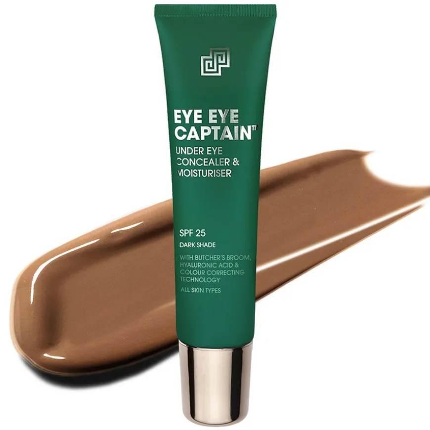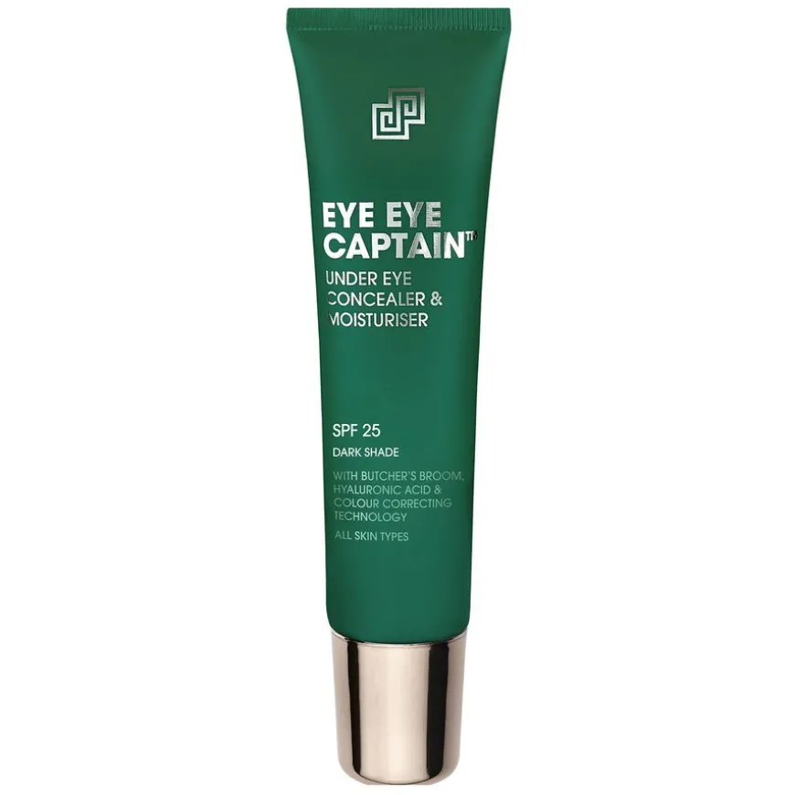 Eye Eye Captain Under Eye Concealer & Moisturiser er en farget øyekrem med fargekorrigerende teknologi som dekker mørke ringer, reduserer hovenhet og jevner hudtonen rundt øynene. Kjølende metallkuler masserer huden ved påføring og med solfaktor 25.