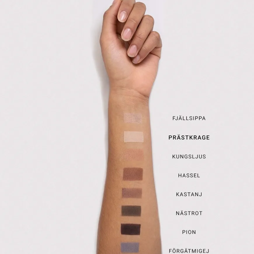 Eye Shadow er en øyenskygge med høyrene mineralerpigmenter som gir en intensiv farge i skimmrende og matt finish. Teksturen er myk og lett å jobbe med. Ingrediensene velges med omhu for å sikre at produktene er optimalisert for de med følsomme øyne, og/eller de som bruker kontaktlinser.