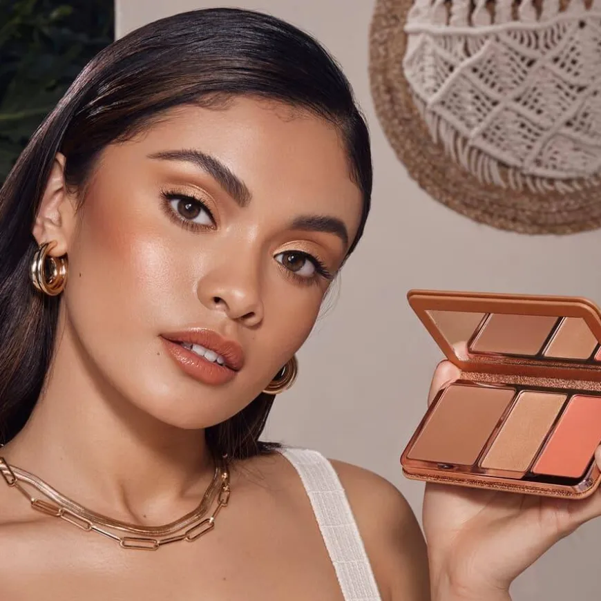 - Alt-i-ett palett som inneholder nye formler for både bronzer, highlighter og rødme.