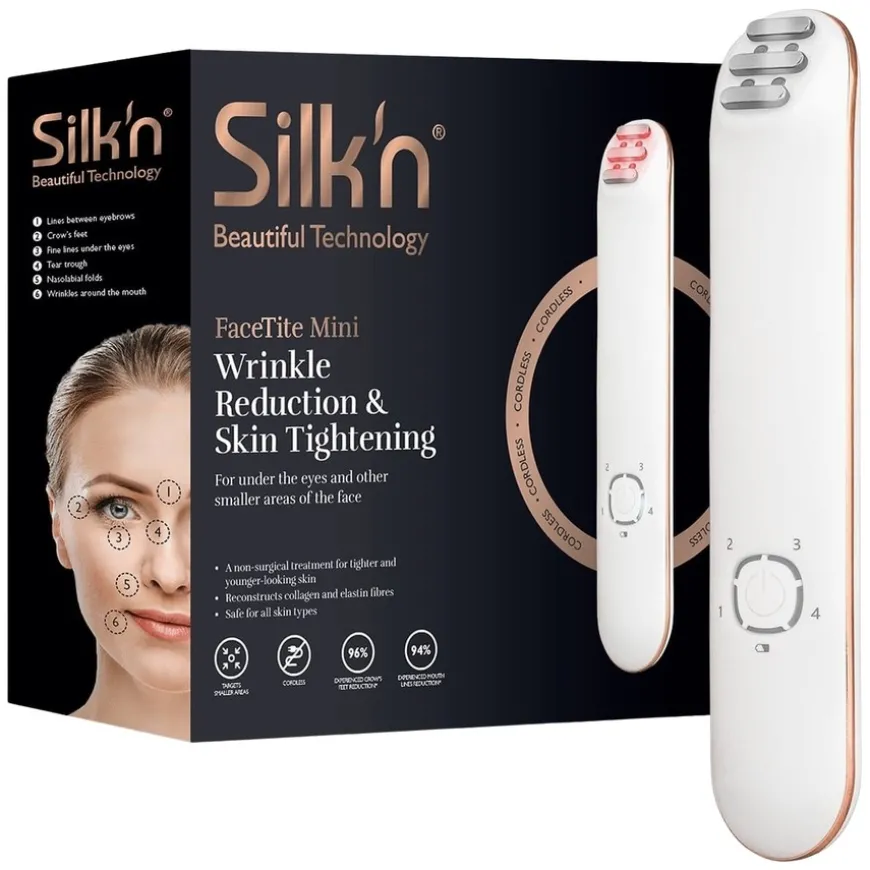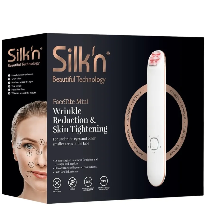 FaceTite Mini Incl Slider Gel myker opp fine linjer på vanskelig tilgjengelige steder. FaceTite Mini med radiofrekvens og LED-lysenergi er en anti-aldringsenhet for jevnere hud som ser yngre ut. Den fokuserer på fine linjer i de mindre områdene av ansiktet, som under øynene, mellom øyenbrynene og rundt munnen. FaceTite Mini når dypt inn i huden og forbedrer huden innenfra og ut.