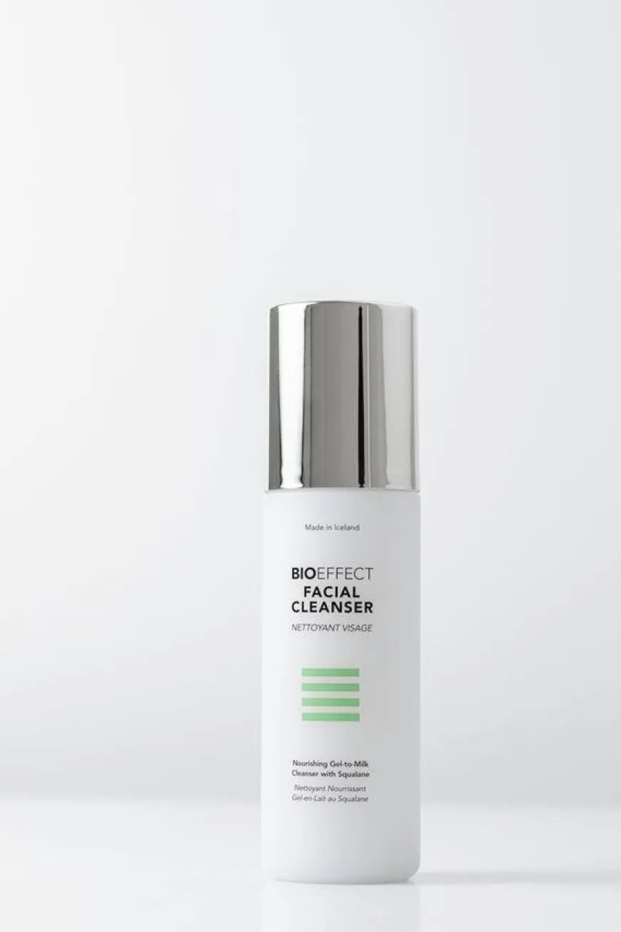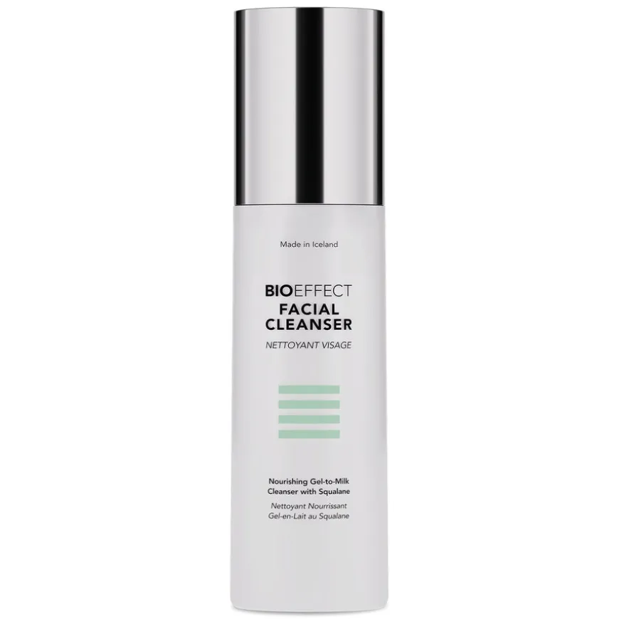 Bioeffect Facial Cleanser er en nærende og squalane-beriket ansiktsrens som er effektiv men skånsom, noe som gjør den egnet for alle hudtyper. Den fjerner sminke, urenheter, SPF, oljer og forurensning – uten å påvirke eller svekke hudbarrieren. Huden blir rengjort, fuktet og optimalt forberedt for gjenværende hudpleie. Rensen har en behagelige «gel to milk»-tekstur etterlater en velholdt og smidig hud som verken føles stram eller klissete. Formelen er beriket med en blanding av nærende og rensende ingredienser, inkludert squalane og byggfrøekstrakt.