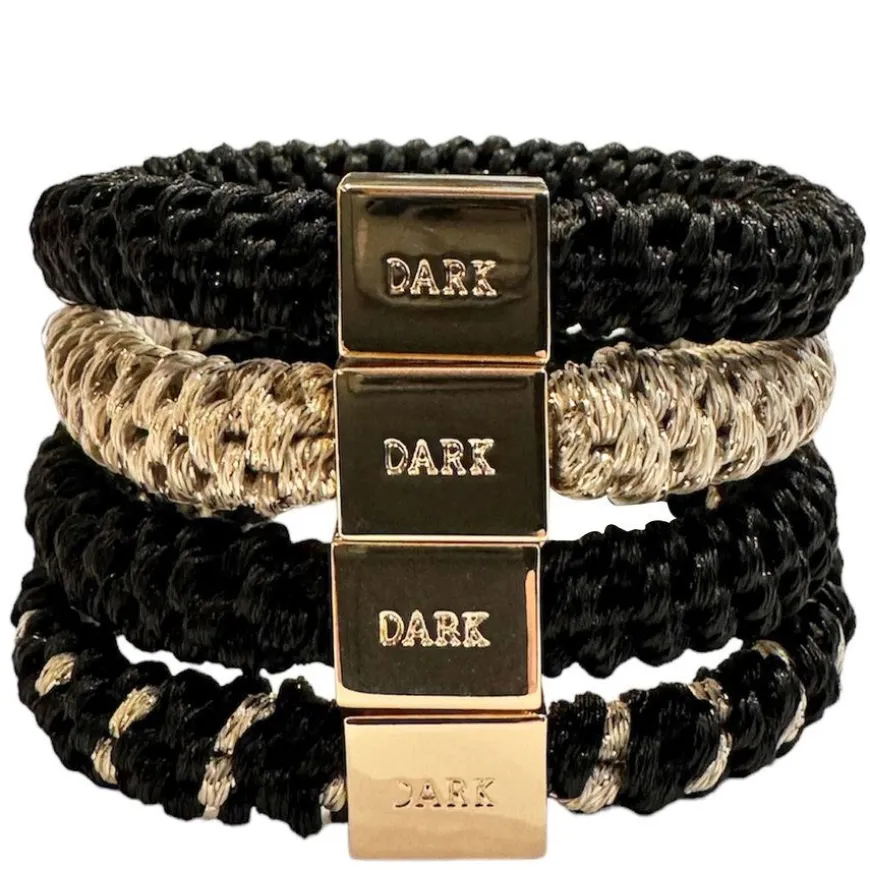 DARK Fat Hair Ties er fire nydelige hårstrikk i lekre farger. Fast strikk med gulldetalj.