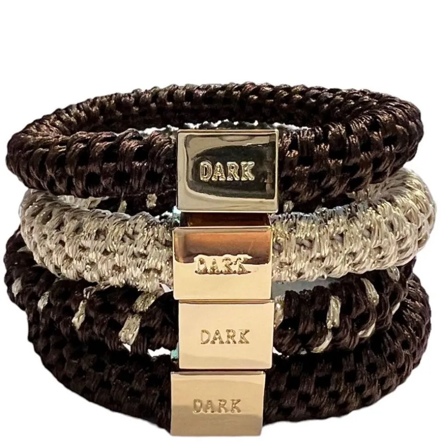 DARK Fat Hair Ties er noen nydelige hårstrikk i lekre farger. Fast strikk med gulldetalj.