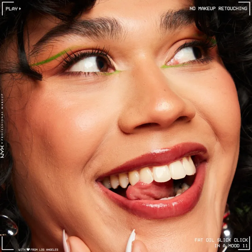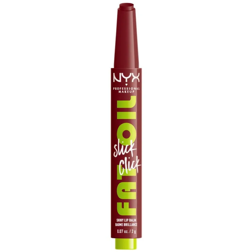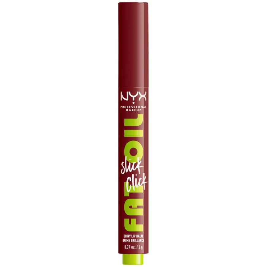 NYX Professional Makeup Fat Oil Slick Click er en pigmentert leppepomade som med bare et klikk gir akkurat passe mengde til leppene. Få et pleiende boost med den veganske formelen* som er beriket med avokado-, multe- og bringebærolje. Myke lepper med bare ett klikk.