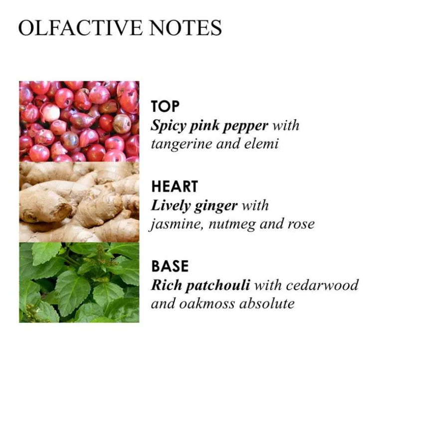 - Noter av rosa pepper, ingefær og patchouli.