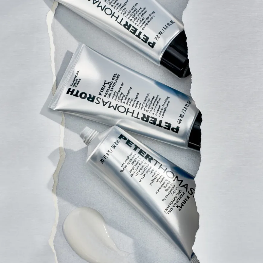 Firmx Peeling Gel fra Peter Thomas Roth er en unik peeling-gelé som eksfolierer huden ved å rulle, løfte og fjerne døde hudceller. Denne effektive virkningen er et resultat av fysiske og enzymatiske mekanismer. Denne behandlingen passer for den mest følsomme til de mest motstandsdyktige hudtypen. Firmx Peeling Gel bidrar til å fjerne urenheter og å rense tilstoppede porer for å gi et mer ungdommelig og strålende utseende.