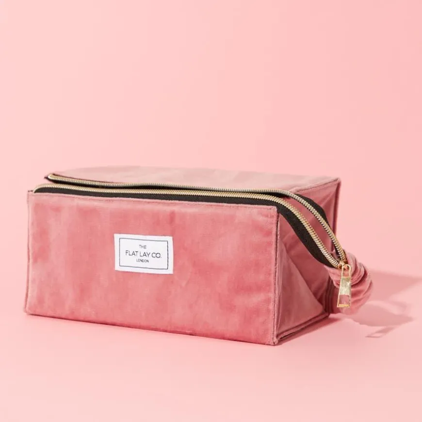 Flat Lay Makeup Box Bag fra The Flat Lay Co. er en smart, strukturert sminkemappe som kombinerer stil med funksjon. Den åpnes til et praktisk, firkantet brett på sekunder og gir deg full oversikt over sminken – ingen mer graving i kaotiske mapper! Laget med tre elastiske børsteholdere, innvendig glidelåslomme og en praktisk bærehank. Når vesken lukkes, blir den til en ryddig og stabelbar boks som passer perfekt på sminkebordet eller i kofferten. Perfekt både hjemme og på reise – og den beskytter alltid produktene dine fra skitne overflater og søl.