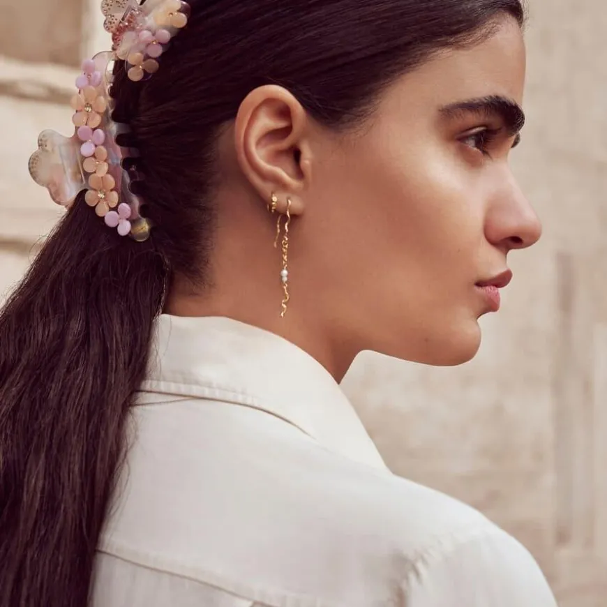 Florina Hairclaw Orchid fra Maanesten er en vakker hårklype som bringer sommerlige vibber til frisyren din. Med sine tredimensjonale blomstermotiver og fine farger gir den et friskt og feminint uttrykk. Den er laget av slitesterkt acetat og jern med miljøvennlig elektrobelegg, noe som sikrer både stil og funksjonalitet. Perfekt for å holde håret på plass med en lett og elegant følelse – enten til hverdags eller spesielle anledninger.