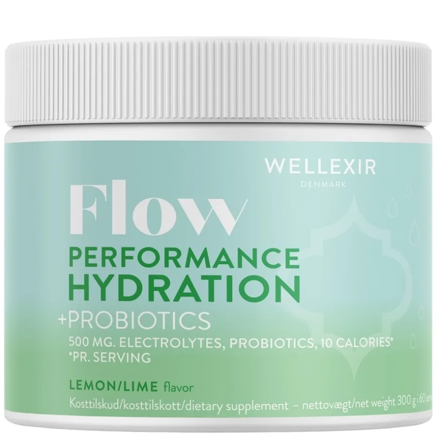Wellexir Flow Performance Hydration Lemon/Lime er en elektrolyttdrikk utviklet for å optimalisere væskebalansen og mineralopptaket under fysisk aktivitet eller varme forhold. Formelen er utviklet i samarbeid med ernæringseksperter og er ideell for å fylle på med væske og elektrolytter samtidig som den gir en frisk smak.