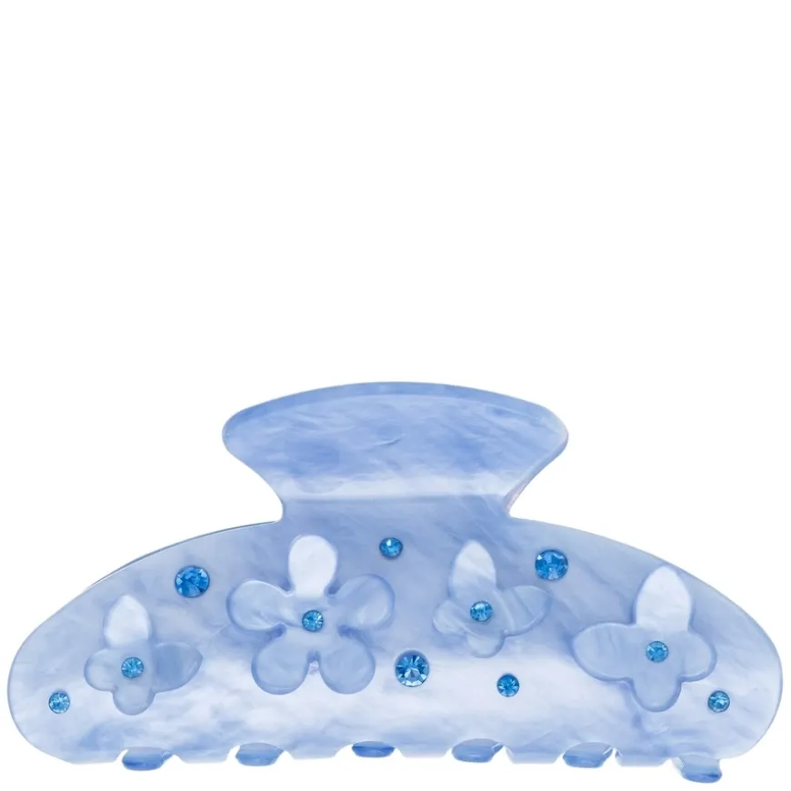 Flower & Butterfly Hair Claw er en elegant hårklype dekorert med blomster- og sommerfugldetaljer samt glitrende krystaller. Med en størrelse på 9 cm gir den et sofistikert og feminint preg til enhver frisyre, samtidig som den holder håret sikkert på plass. Perfekt for både hverdagsbruk og spesielle anledninger.