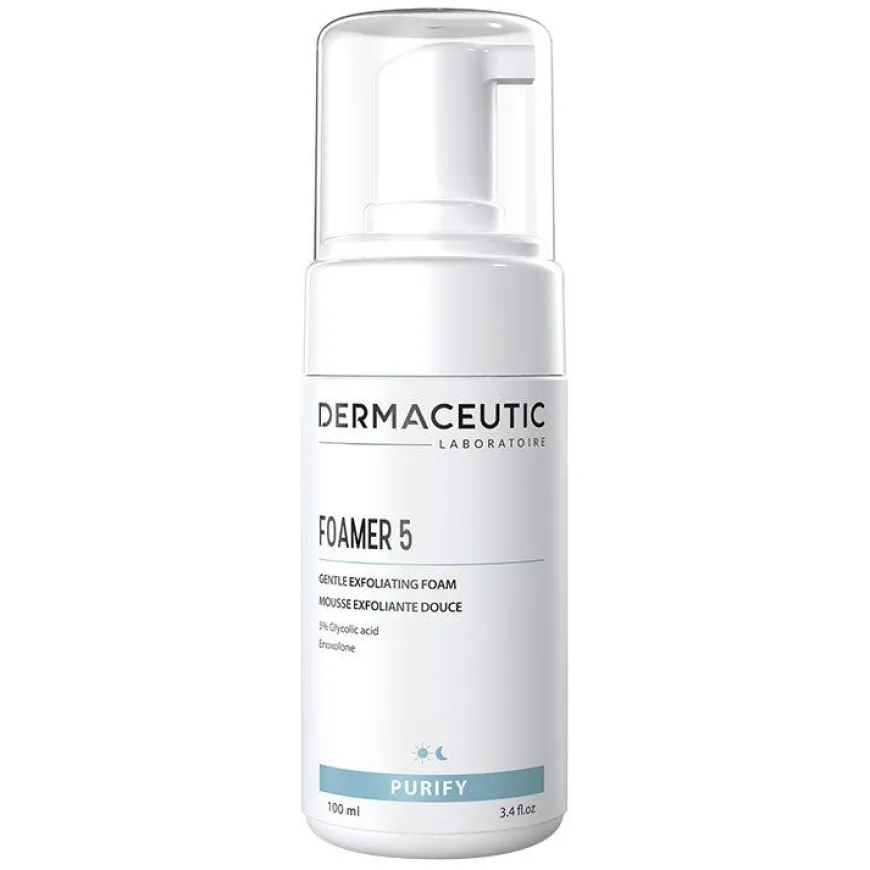 Foamer 5 er et renseskum som skånsomt fjerner urenheter og døde hudceller. Den renser huden mildt, men effektivt og etterlater seg en myk og silkeglatt hud med fin glød. 5% glykolsyre fjerner urenheter og løser opp i gamle hudceller, mens enoxolone beroliger og har anti-inflammatorisk effekt. Passer også en sensitiv hud.
