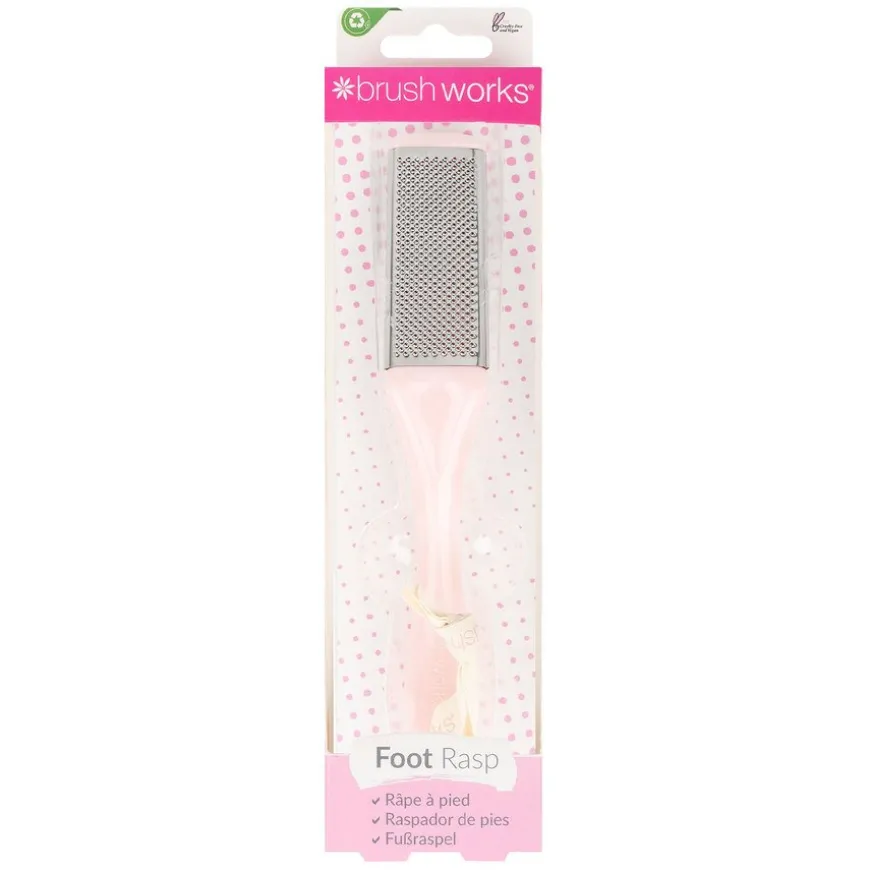 Foot Rasp fra Brushworks er en fotrasper – si farvel til tørre, sprukne hæler! Fotraspen er laget av rustfritt stål som trygt og effektiv fjerner grov hud og callus på bare noen få minutter. Den er utrustet med et lett håndtak som gjør det enkelt å fjerne hard hud. fotraspen er det perfekte tilskuddet til ditt pedikyrsett for uanstrengte glatte resultater.