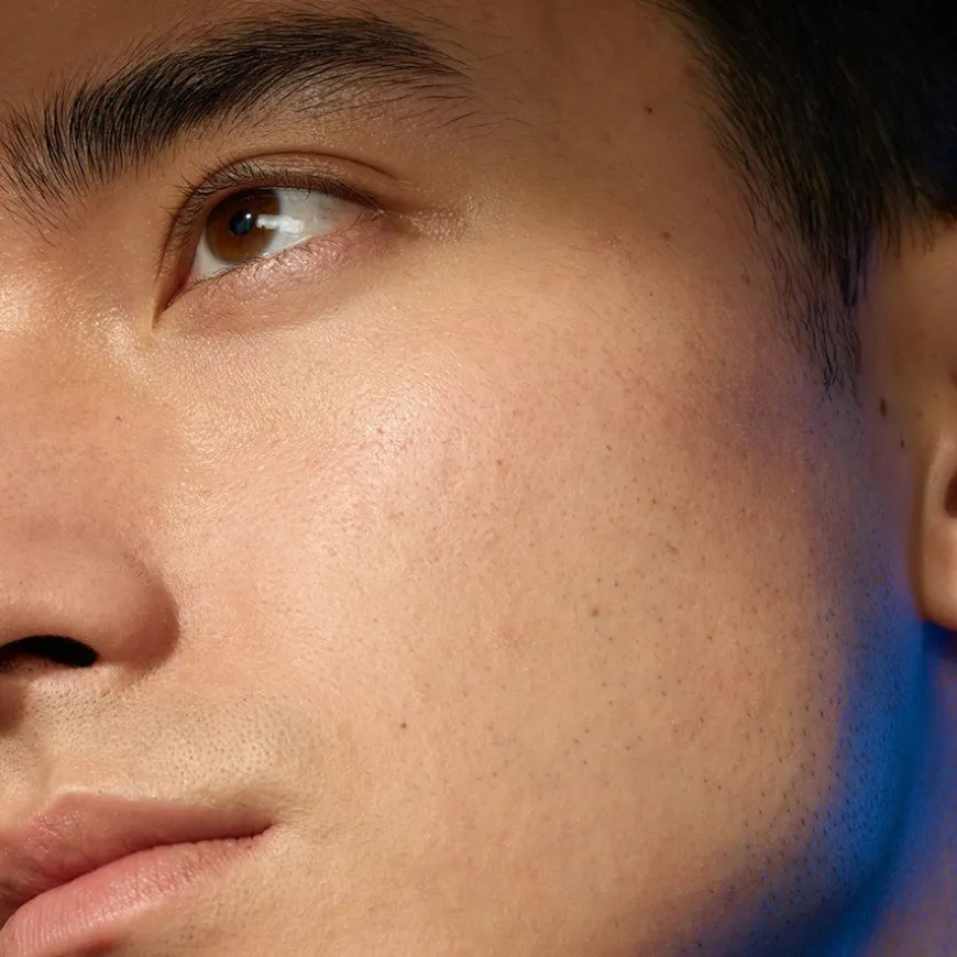- Ta en liten mengde Blue Serum i håndflaten.