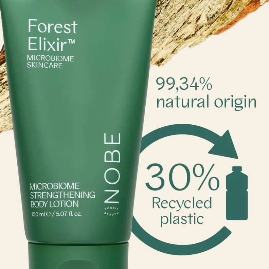 Forest Elixir® Microbiome Strengthening Body Lotion er en dypt fuktgivende kroppslotion beriket med Re-Connecting Nature® – et innovativt skogsmikrobielt ekstrakt utviklet av finske universiteter og produsert av Uute Scientific. Ekstraktet er verdens første naturlige ingrediens som etterligner det biologiske mangfoldet i nordiske skoger, og hvert gram inneholder milliarder av inaktiverte mikrobielle partikler. Dette gir huden en trygg og effektiv eksponering – som et skogbad i flaskeform.