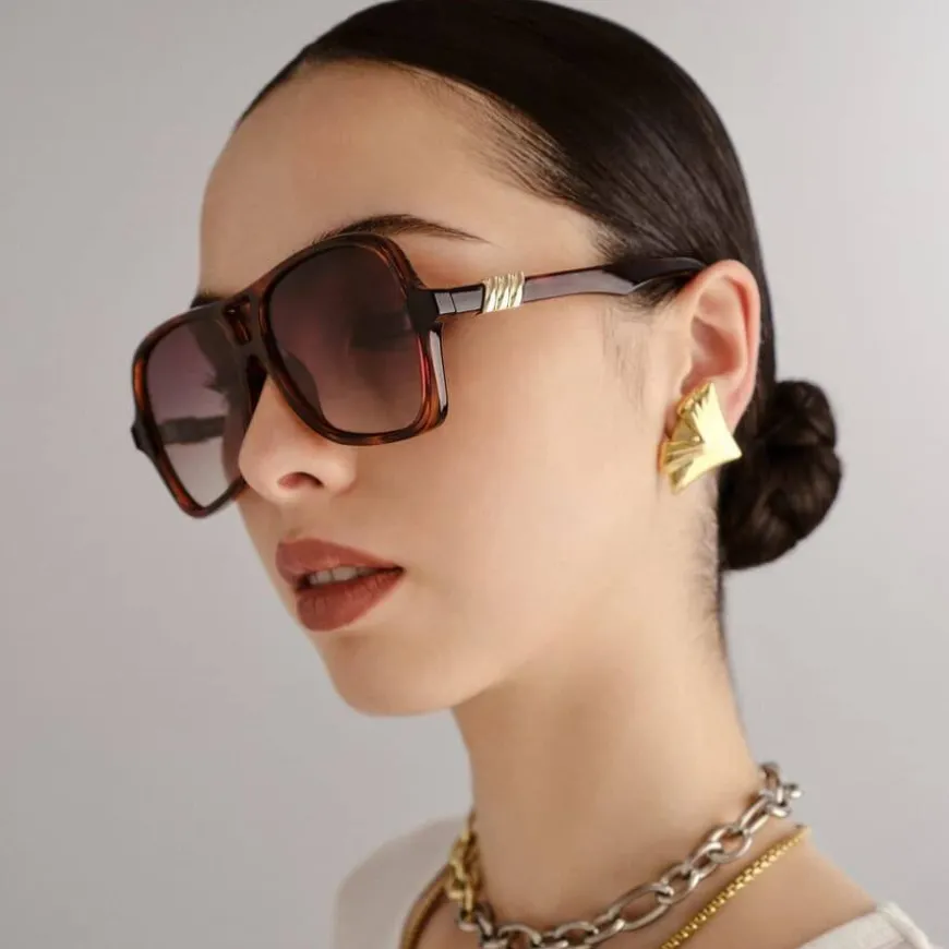 Fortune Teller Toffee Tort fra Le Specs er en unisex solbrille med en markant og vintageinspirert aviator-ramme. Den store silhuetten med unike konturer og detaljerte metallaksenter gir et iøynefallende uttrykk med tydelige 70-tallsvibber. Solbrillen er laget av Ecozen T110, en BPA-fri polymerplast med 10 % plantebasert biomasse, som gir høy slitestyrke, lav vekt og behagelig passform. De khaki-graduerte glassene er laget av polykarbonat, og har både knuse- og ripebestandige egenskaper. Med kategori 2 UV-beskyttelse er modellen ideell for middels solforhold, og kombinerer komfort og stil for alle kjønn.