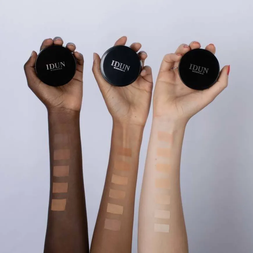 IDUN Minerals pudderfoundation gir et naturlig resultat, samtidig som den pleier og beskytter huden. Naturlige fargepigmenter skaper en jevn nyanse som lett absorberes og blender med din naturlige hudfarge, huden forblir myk samtidig som du får en vakker finish som holder hele dagen. Pudderet gir lett til full dekning.
