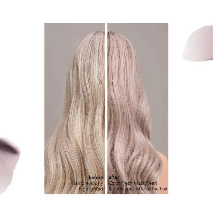Wella Professionals Pearl Blonde Color Fresh Mask er en hårkur og glansbehandling som ikke skader håret, og som er utformet for å bevare, forvandle eller forsterke salongfargen. Pearl Blonde er perfekt for blekede og lysere blonde nyanser for å bevare en platinafinish uten å endre nyansen dramatisk. Denne fargemasken vaskes gradvis ut, og de rike pleiende ingrediensene i formelen gjør at håret føles mykt, slik at det ikke er behov for å bruke conditioner.