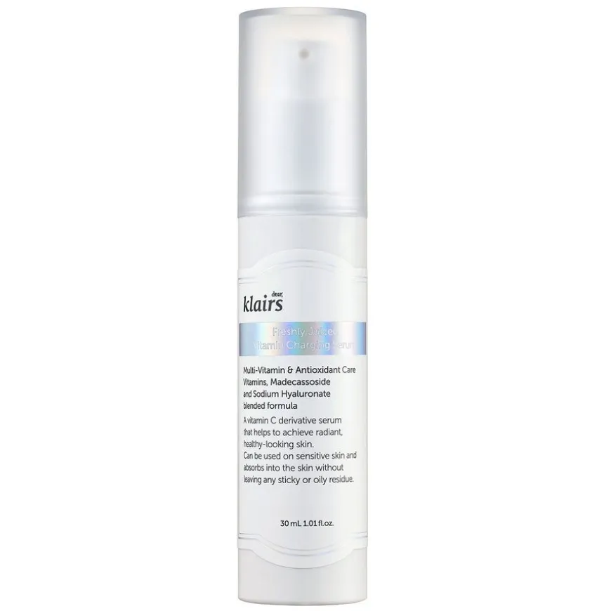 Freshly Juiced Vitamin Charging Serum er den ultimate løsningen for å oppnå strålende, sunn hud. Dette serumet med 10 % C- vitamin er spesielt formulert for å håndtere ujevn hudtone, pigmentering og tekstur, og etterlater deg med en lysere, jevnere hudfarge. Klairs kommer nå med nytt Vitamin C-serum. Serumet retter seg mot den mer erfarne C- vitaminbrukeren som ønsker høyere konsentrasjon av C-vitamin (Freshly Juiced Vitamin Drop inneholder 3 % og Freshly Juiced Vitamin Serum inneholder 10%). Serumet kommer i en pumpeflaske, som gjør at produktet ikke oksiderer så lett og har en sammensetning som gjør at det også er tilpasset sensitiv hud. Serumet har en tynnere konsistens enn Freshly Juiced Vitamin Drop og trekker lettere inn i huden for de som har mer kombinert til fet hud. NB! Denne erstatter ikke Freshly Jucied Vitamin Drop, men er ett supplement.