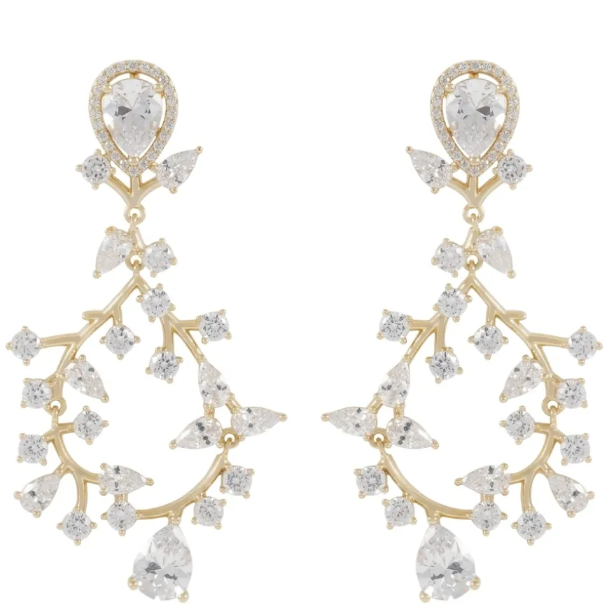 Friday Branch Pendant Earring fra Snö Of Sweden er iøynefallende og elegante øredobber i gullbelagt messing, dekorert med små, klare zirconia-steiner i et grent-inspirert design. Øredobbene kombinerer naturens organiske former med glitrende detaljer som gir et luksuriøst preg. Dette er det perfekte tilbehøret for deg som ønsker å løfte et antrekk med noe sofistikert og uttrykksfullt. Passer til både fest og formelle anledninger.