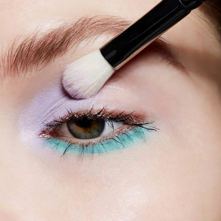 - Bruk øyenskyggen på øyelokket med en MAC 239 børste i en skyvende bevegelse for å bygge opp fargen og gi et sterkere uttrykk.