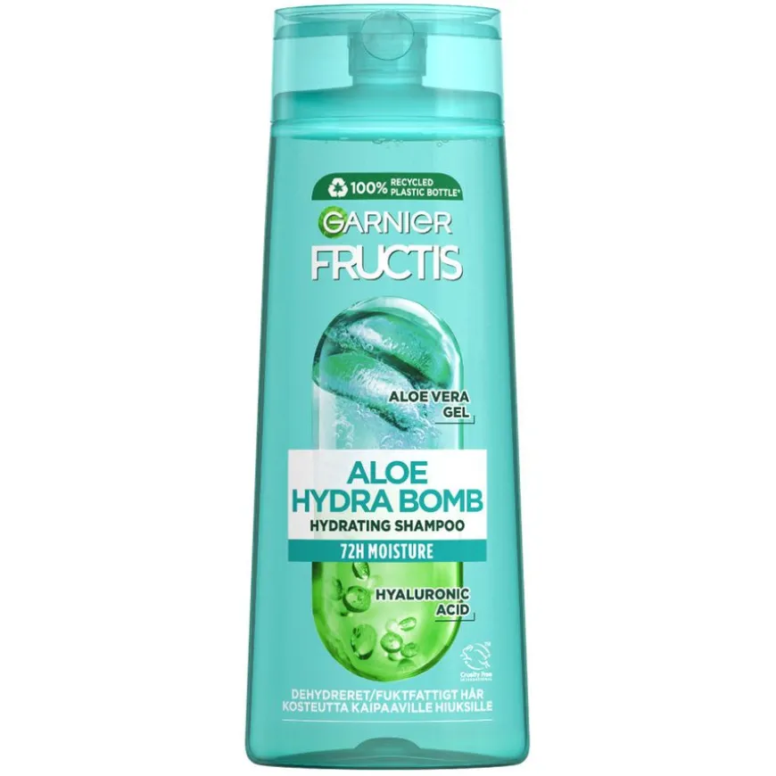 Er du klar for å forvandle ditt tørre hår? La Garnier Fructis Aloe Hydra Bomb en fuktighetsgivende shampoo til dehydrert og normalt hår hjelpe deg. Etterlater håret mykt, lett og fuktet i 72 timer*. Vegansk formel** beriket med aloe vera gel og hyaluronsyre som tilfører håret fuktighet uten å tynge. Flasken er laget av 100 % resirkulert plast*** som også er 100 % resirkulerbar, naturligvis. Garnier er offisielt godkjent av Cruelty Free International under Leaping Bunny-programmet.