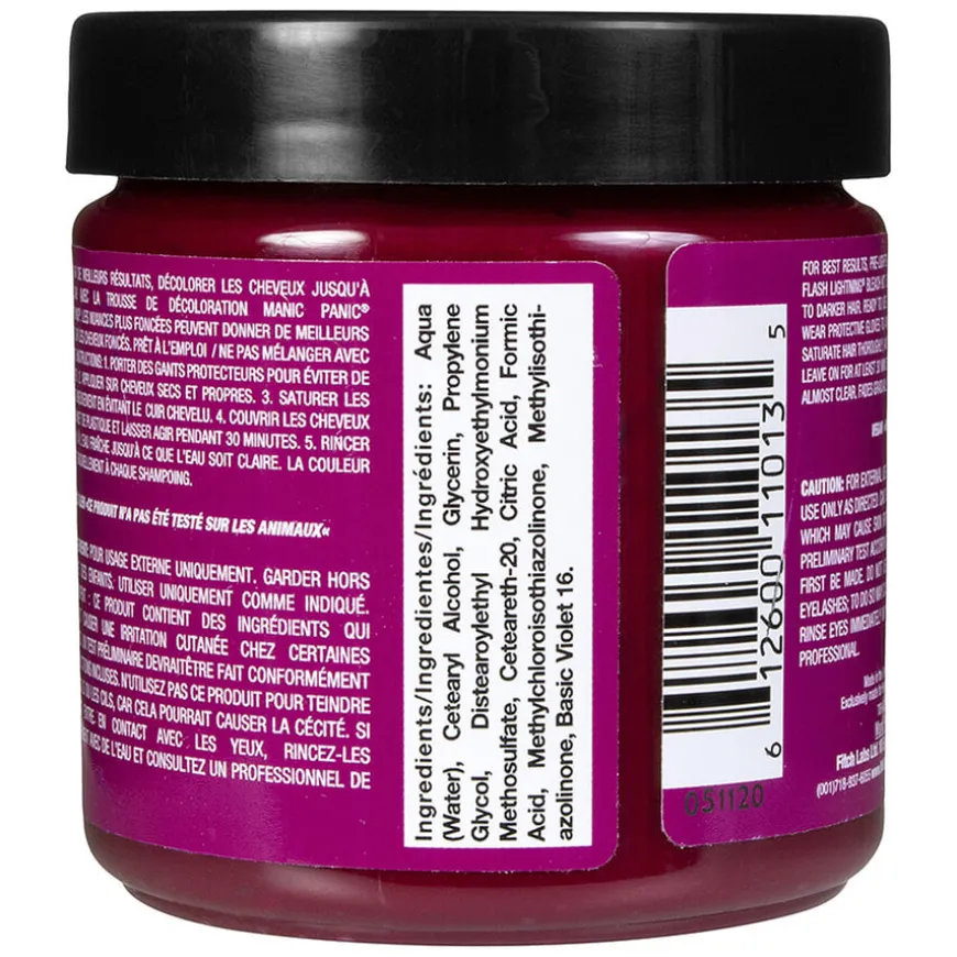 Fuschia Shock fra Manic Panic er en intensiv rosa-lilla hårfarge. Fargen kan brukes på ubleket hår, men for best resultat anbefales det å bleke håret til nivå 8 blond eller lysere.