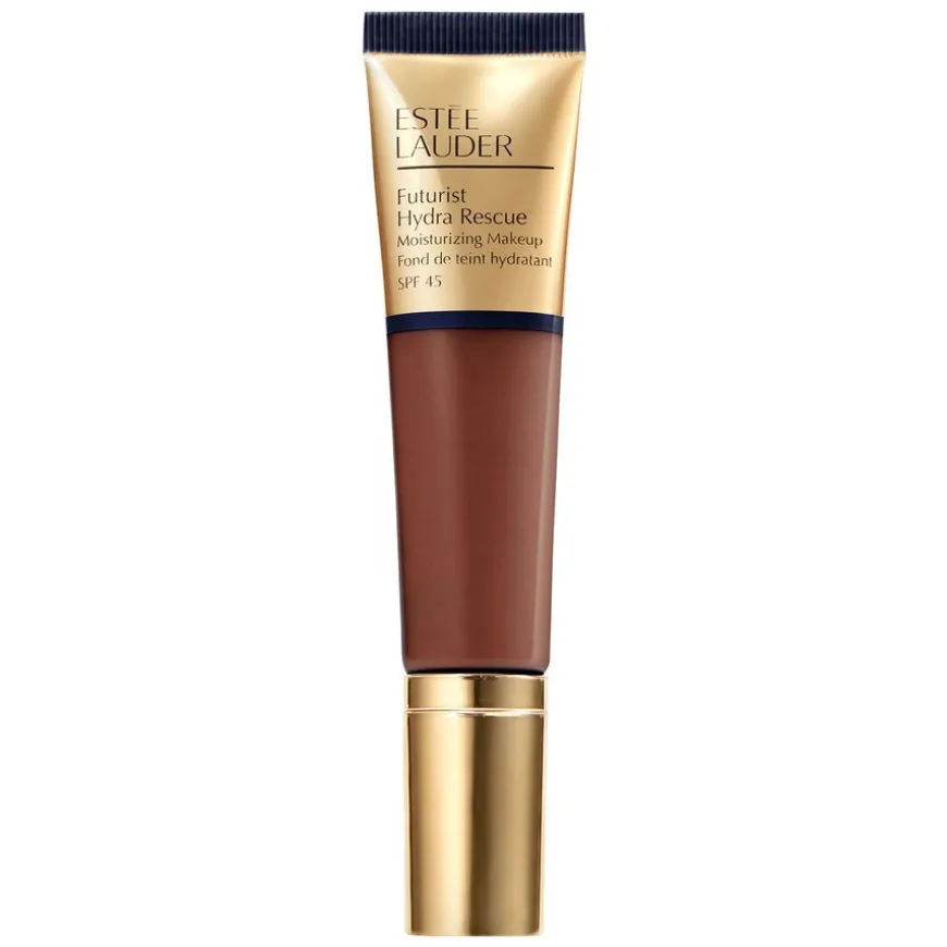 Futurist Hydra Rescue Moisturizing Makeup Foundation SPF45 er en foundation som gir full dekning, pustende, hudelskende makeup som gir huden glød i 12 timer. Dekning + pleie: Drevet av effektiv hudpleie fra Estée Lauder. Fuktighetsgivende makeup som er tilsatt IonCharged Water, Probiotic Technology og chiafrøekstrakt.