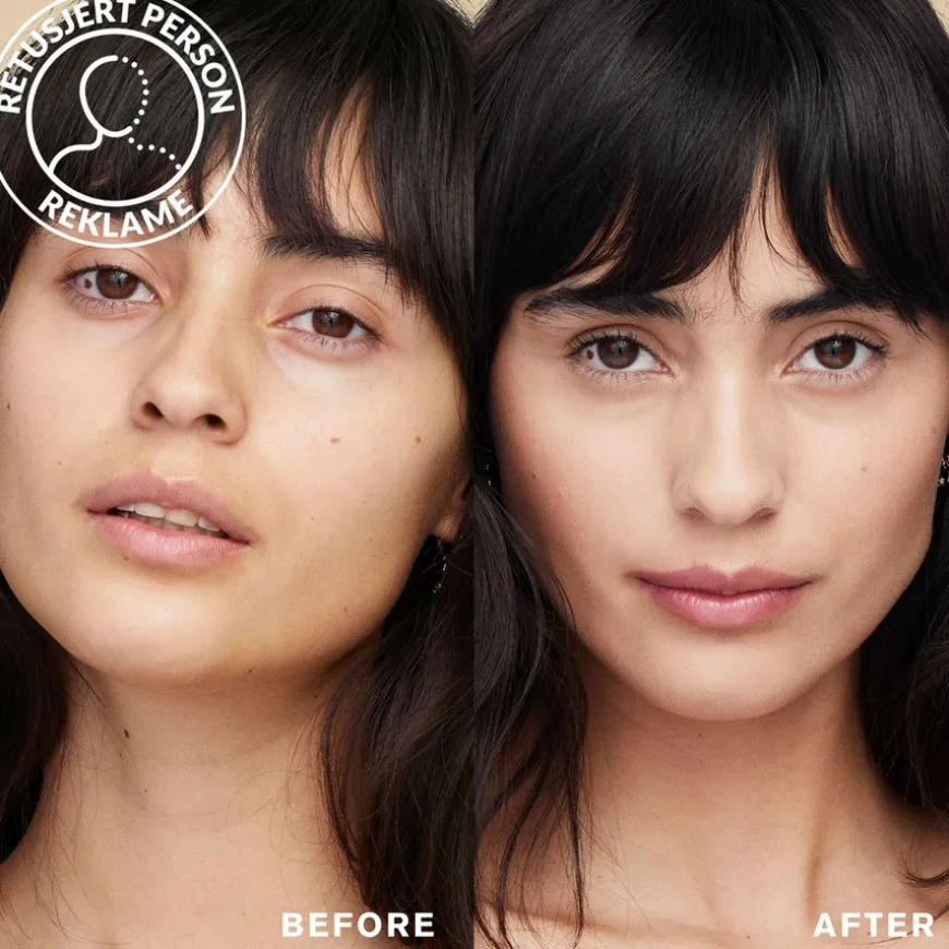 - Påfør den lette, fuktighetsgivende flytende makeupen på huden.