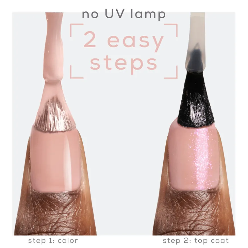 - Enkel å fjerne akkurat som vanlig neglelakk med en neglelakkfjerner med eller uten aceton.