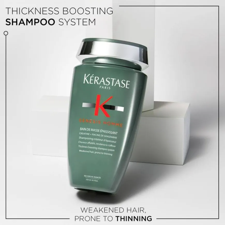 Kérastase Genesis Bain de masse Épaississant fra Kerastase er et hårbad for tykkere og mer volumfylt hår til menn med svekket hår med tendens til å tynnes ut. Shampoen renser skånsomt hodebunn, hår og skjegg.