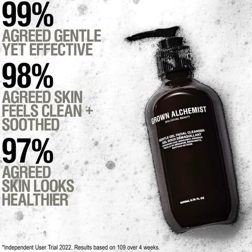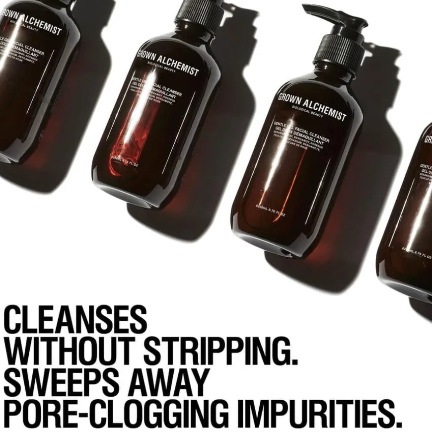 Gentle Gel Facial Cleanser er en lett gelé-rens for ansikt som skånsomt fjerner urenheter uten å tørke ut eller strippe huden for fuktighet. Rensen er formulert med fuktighetsgivende Aloe og en naturlig duft fra Geranium, Rose, Kamille og Bergamott. Huden føles ren, rolig og oppfrisket.