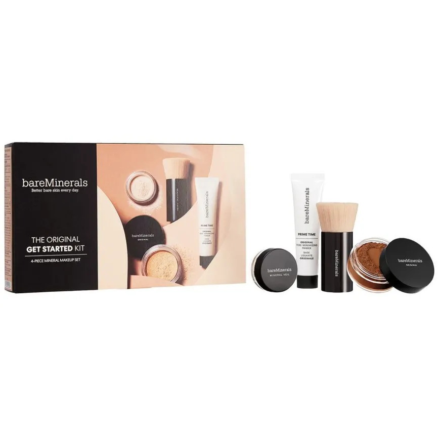 Get Started Kit er det perfekte startsettet for deg som vil oppdage fordelene med mineralsminke! Dette settet inneholder fire miniversjoner av bareMinerals’ bestselgende løse mineralsminkeprodukter, som vil bidra til å gjøre huden din sunn – umiddelbart og over tid.