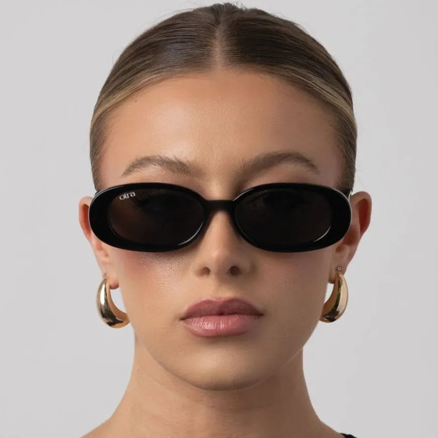 Gina fra Otra Eyewear er et par avrundet smalesolbriller. Disse stilfulle solbrillene har et elegant design med sorte innfatninger og gråtonede glass som gir et sofistikert utseende. Gina-modellen er lett og behagelig å ha på seg, og passer til alle ansiktsformer. Solbrillene gir god UV-beskyttelse, noe som gjør dem ideelle for daglig bruk. De er perfekte for deg som ønsker å kombinere mote med funksjonalitet.