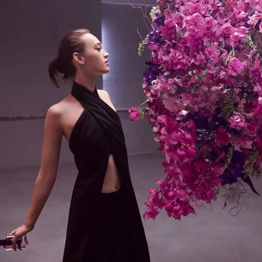 I toppnotene finner vi delikate fiolette blomster som møter krispe noter av Fuji-eple og granateple. Duftens hjerte er en miks mellom jasmin og wisteria, en Murasaki-farget blomst, hvor bladene er godt festet til stilken. Et pust av fressia gir buketten et snev av friskhet, balansert av kraften til sadeltre som gir et levende og pudret uttrykk.