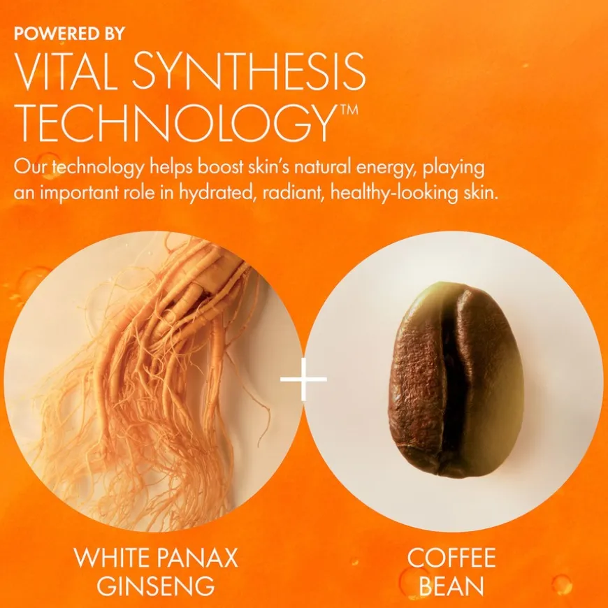 - Vital Synthesis Technology™: Vår innovative teknologi kombinerer White Panax Ginseng med koffein fra kaffebønner for å øke hudens naturlige energi og gi en sunn og strålende glød.