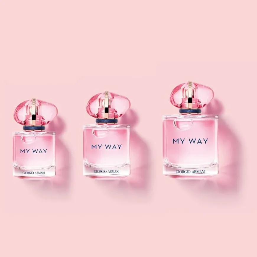 My Way Eau de Parfum Nectar inviterer deg med på en sanselig reise og fanger en frigjort og frisinnet visjon av kvinnelighet.Denne fruktige blomsterduften, som stammer fra det herlige møtet mellom saftig pære og strålende tuberose, er innkapslet i en ny rosa flaske kronet med en gjennomsiktig rosa talismanhette.