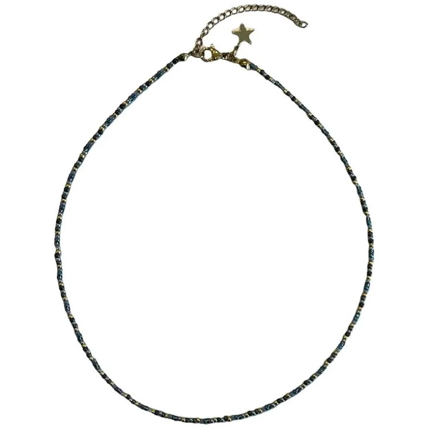 Glass Bead Necklace 2mm er et delikat og stilrent halskjede laget av små, glitrende glassperler. Med en lengde på 40 cm pluss 5 cm forlengelse, gir det en fleksibel passform som passer til enhver anledning. Perfekt alene for en minimalistisk look eller kombinert med andre smykker for en mer personlig stil.