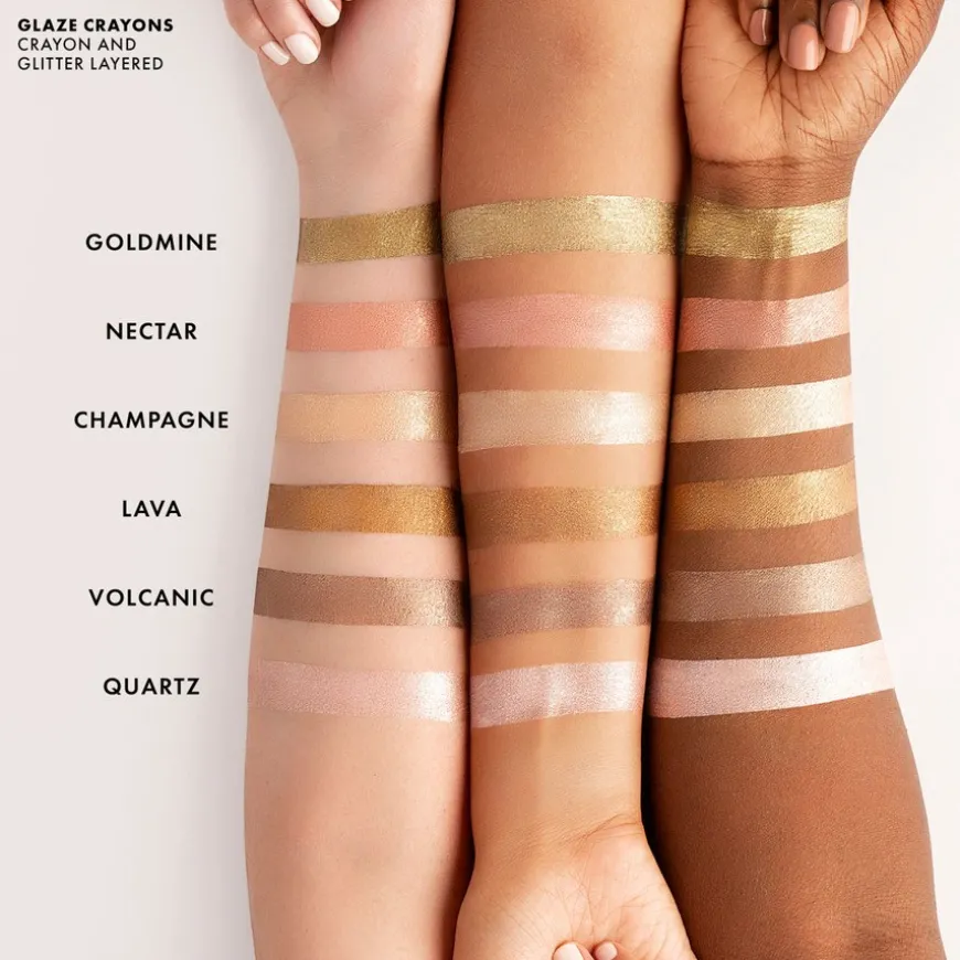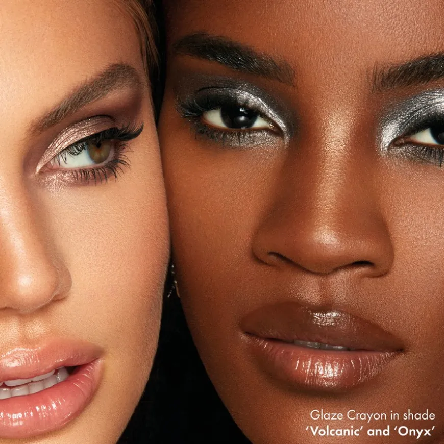 Glaze Crayon – ICONIC tosidige øyeduo er den ultimate 2-i-1 fargestiften slik at du kan skape skimrende, ultra-hypnotiserende øyne, på sekunder. Den er fullpakket med perlemorspigmenter og uimotståelig gnist, nå kan du en helt ny måte å skape en forførende og skimrende look, på et øyeblikk. Den ene enden har en super silkemyk øyenskyggestift som kan jevnes over øyelokket for et fengslende blikk med metallisk farge. Den andre enden er en ultragenerøs, ikke-klebrig glittergel som er perfekt når du ønsker å skape en glitrende, våt glosseffekt. Produktet er vegansk og passer for alle hudtyper.