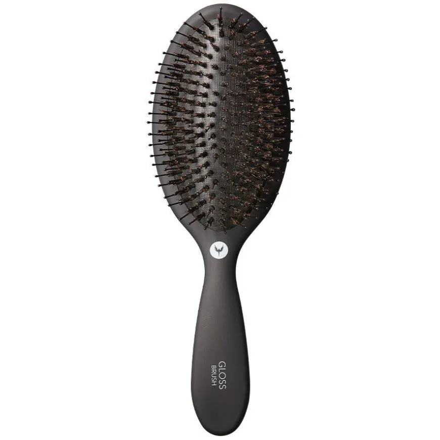 Gloss Wonder Brush Black er en eksklusiv hårbørste som kombinererultrafleksible pigger med ekte villsvinhår som fordeler det sunne og naturlige hårfettet fra hodebunnen og ut i lengdene. Børsten er formet slik at håret samles og gres i seksjoner, og har et gummibelagt håndtak som sikrer et godt grep. Hårbørstengir et sunnere, sterkere og mer skinnende hår, og knoppene på børstepiggene stimulerer hodebunnen.