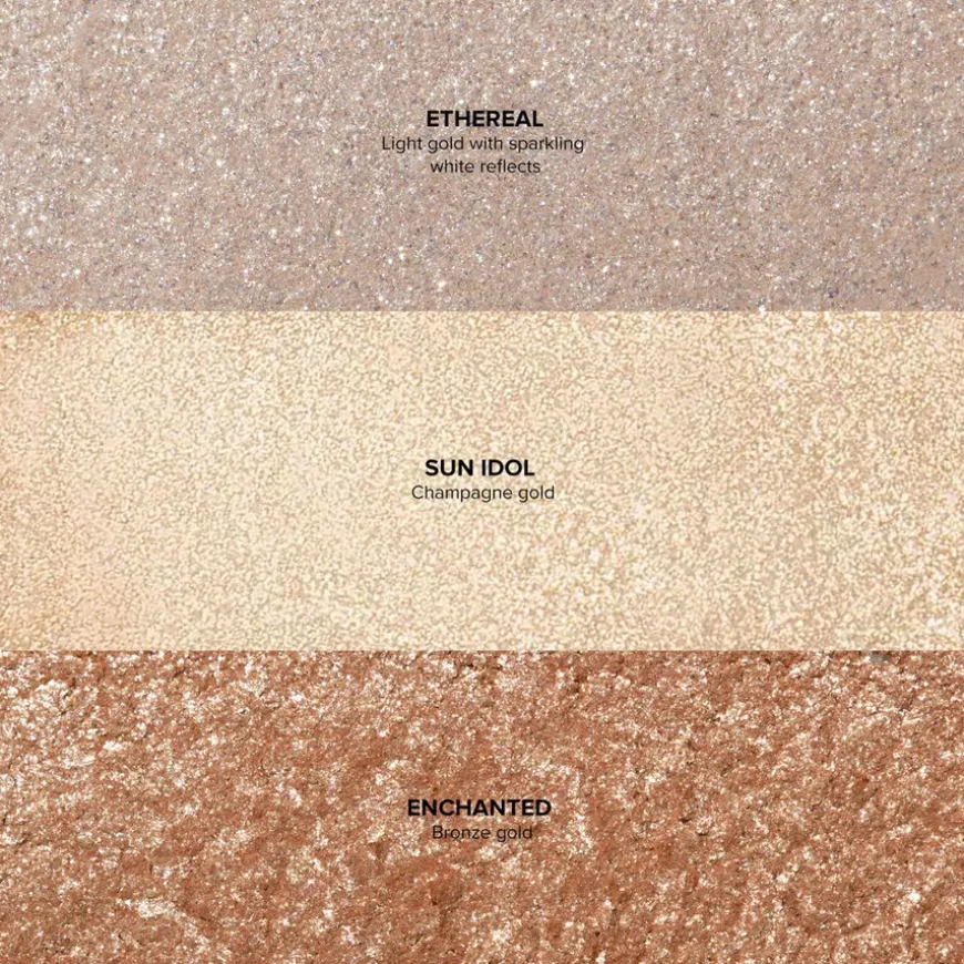Glow Seeker Highlighter er en flatterende highlighter for alle hudtoner med den perfekte kombinasjonen av glatt finish og ultra-glans for en glød-fra-innsiden-effekt. Den unike miksen av kompakt pudder og gel gir en second skin-følelse, en flerdimensjonal glans, og en refleksjon som minner om væske. Sun Idol er en universell nyanse og gir deg muligheten til å bygge opp intensiteten, fra subtil glød til en gylden champagne effekt. Glow Seeker Highlighter kan brukes til å fremheve områder hvor som helst på ansikt, kropp og lepper.